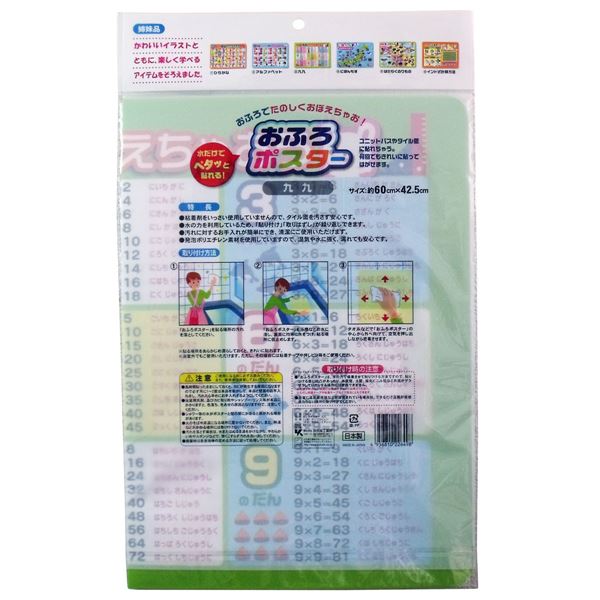 おふろポスター 九九おぼえちゃおう水だけでペタッと貼れる!かわいいイラストとともに、楽しく遊べるポスターです♪